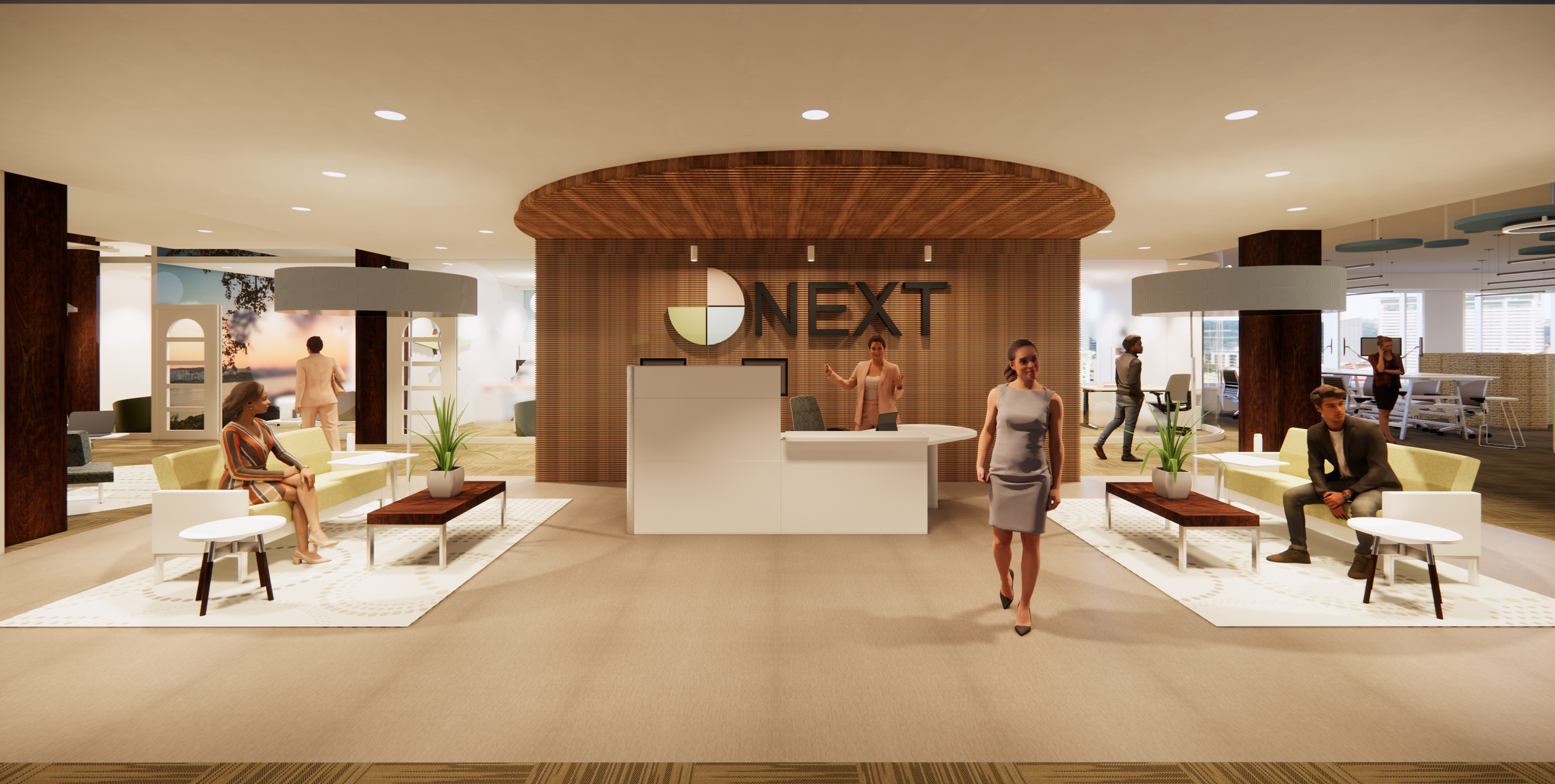 NEXT envisions a new space that reflects its company brand and culture while drawing inspiration from the local region. As a highly collaborative, team-oriented organization, NEXT seeks a work environment that supports both current workflows and future modes of operation, including evolving strategies that promote health and safety in a post-pandemic workplace.