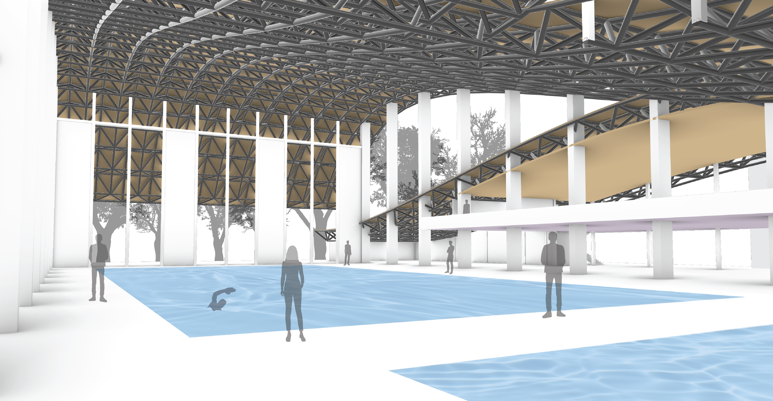 I was tasked with redesigning the UT Aquatics Center on the corner of Andy Holt Avenue and UT Drive. I wanted to design a roof that let the structure act as the ornament, while also making it something that people just knew was an aquatic center. After many iterations, I decided on this design, as it mimicked the waves of water that swimmers + divers inevitably create.